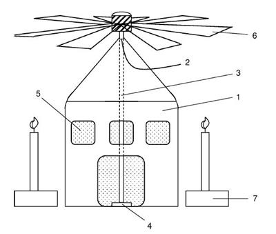 Nachdem wir nun unsere Freunde und Bekannte postalisch versorgt haben, sollten wir uns um das Weihnachtszimmer kümmern. Hierzu gehört für viele Weihnachtsfreunde eine Weihnachtspyramide. Wir kennen sie aus Holz, sogar aus Papier. Aber ach, offenes Feuer und brennbares Material. Hier schafft die DE 20 2016 107 067 U1 Abhilfe: der Grundkörper (1) der Pyramide ist aus Ton oder Keramik hergestellt. Dies bringt laut Erfinder den Zusatznutzen, den Grundkörper durch Demontage des Rotors als Licht auch außerhalb der Weihnachtszeit benutzen zu können.